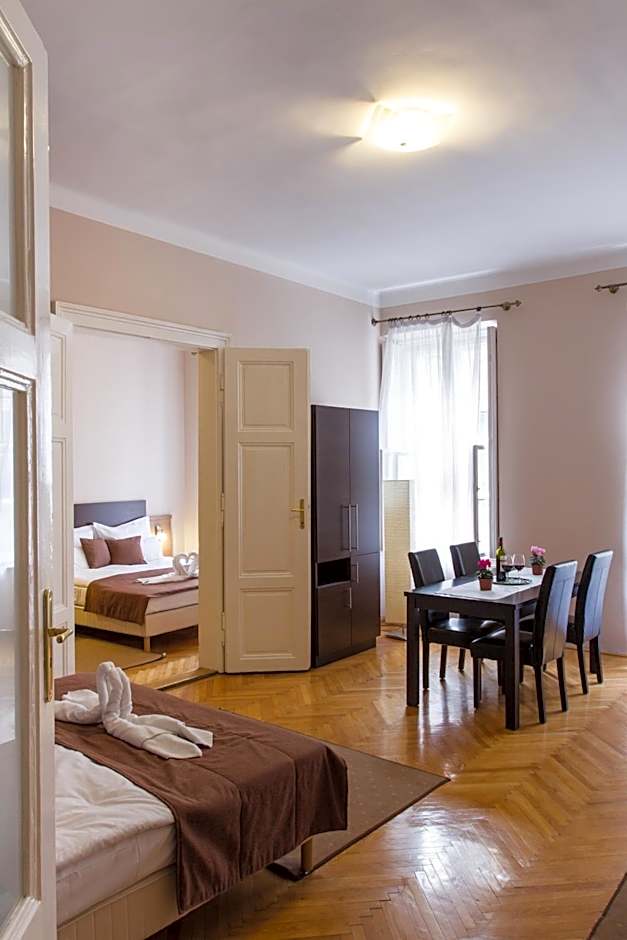Featuring a private entrance, this air-conditioned apartment is consisted of of 2 bedrooms and 1 bathroom with a shower and a hairdryer. The apartment offers a flat-screen TV with satellite channels, soundproof walls, a mini-bar, a tea and coffee maker as well as city views. The unit offers 4 beds.